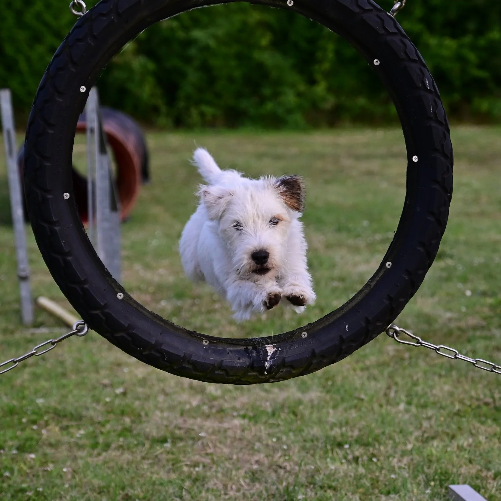 Beim Agility kommt es auf Geschwindigkeit, Wenidkeit, Geschicklichkeit und Korrdination an.